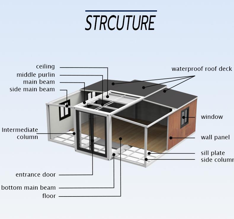 This expandable prefab steel container house is waterproof, insulated, and foldable, making it ideal for various applications such as homes, offices, or medical stations.